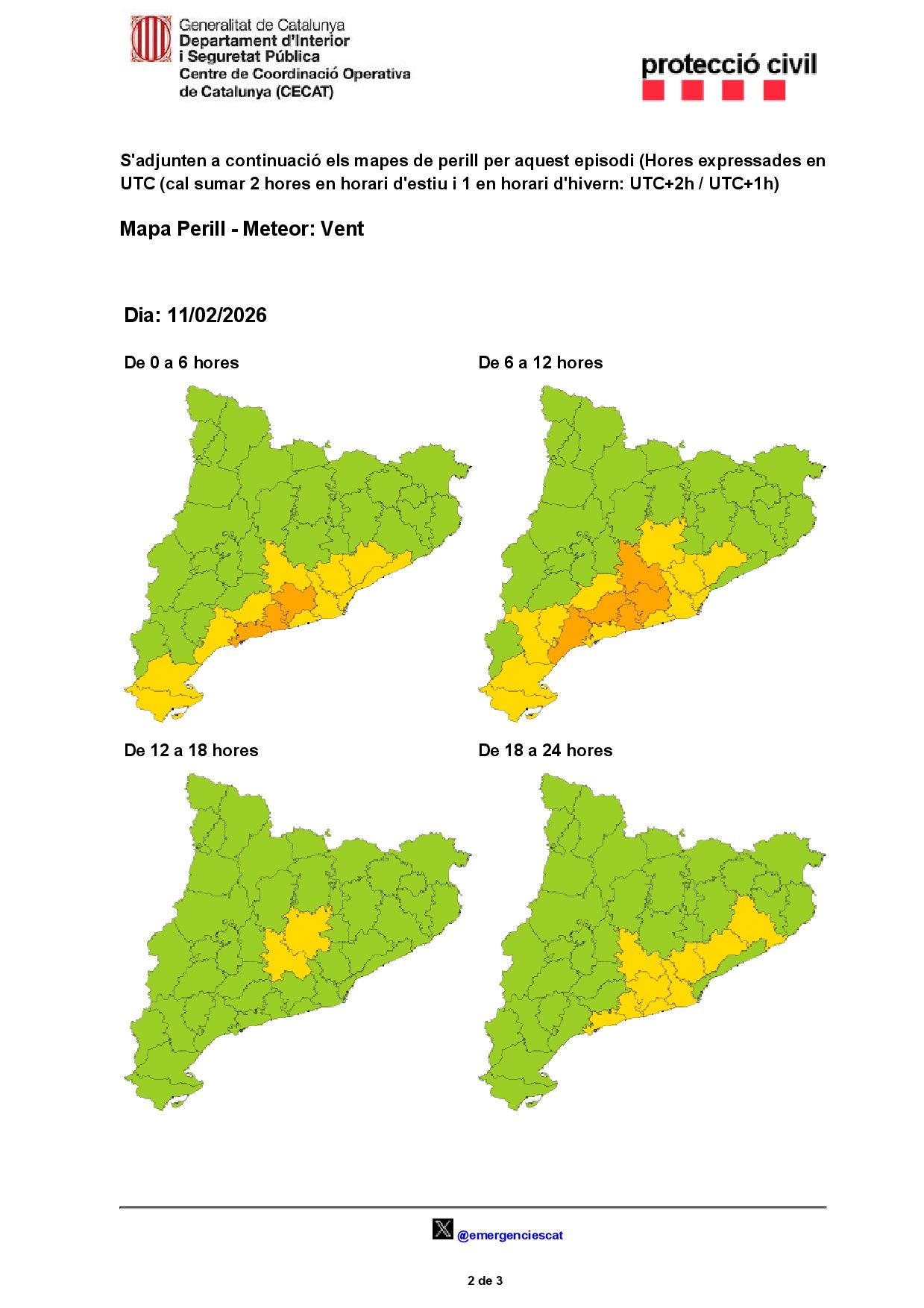Le informamos que hay previsión de fuertes vientos para mañana y el próximo jueves, tal y como puede ver en el documento adjunto, en las comarcas del Alt y Baix Penedès y Tarragonès, y también en todo el corredor de la A-2, respectivamente. Esta activación puede suponer afectaciones a la circulación, en especial para vehículos de mercancías que circulen vacíos.