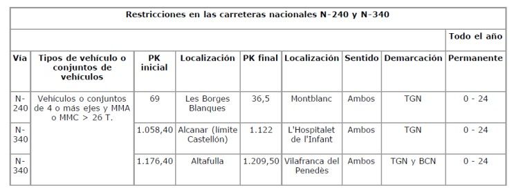 CATALUÑA. RESTABLECIMIENTO RESTRICCIONES N240 Y N340