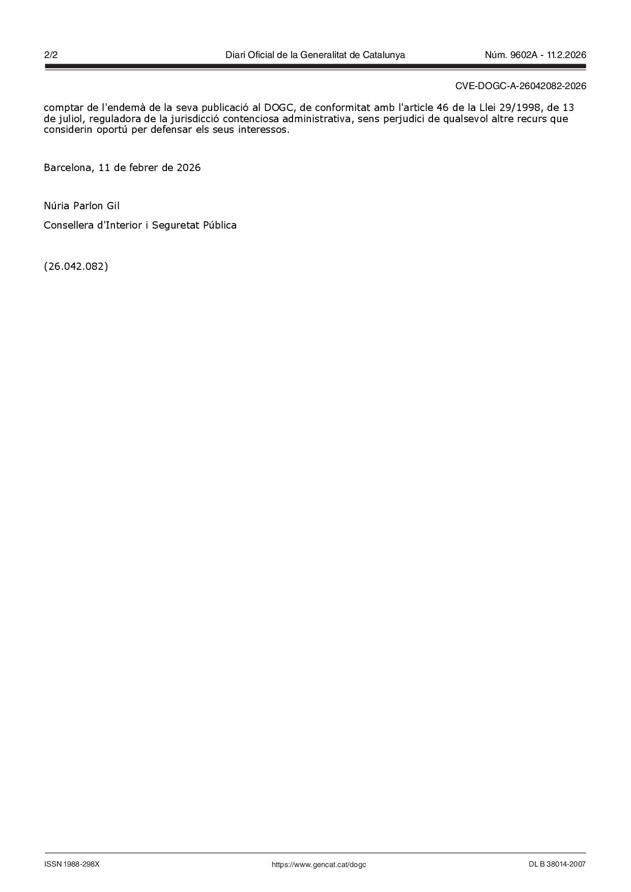- Resolución ISP/342/2026, de 11 de febrero, por la que se establecen determinadas restricciones por la activación del Plan especial de emergencias por riesgo de viento en Cataluña (VENTCAT), en todo el territorio de Cataluña.