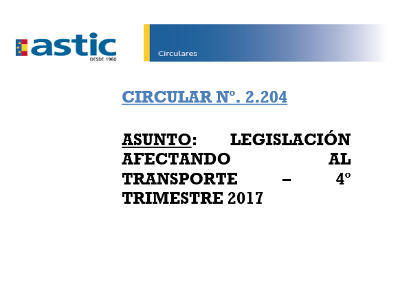 2204 Legislación afectando al transporte 4º trimestre 2017