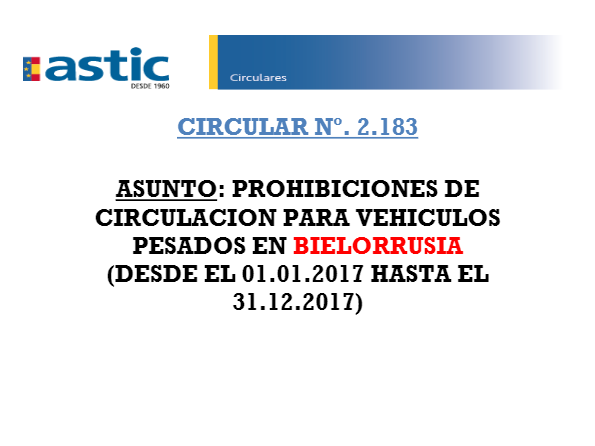 2183 Bielorrusia. Prohibiciones circulacion 2017