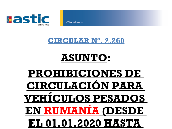 2260 Rumanía. Prohibiciones circulación 2020