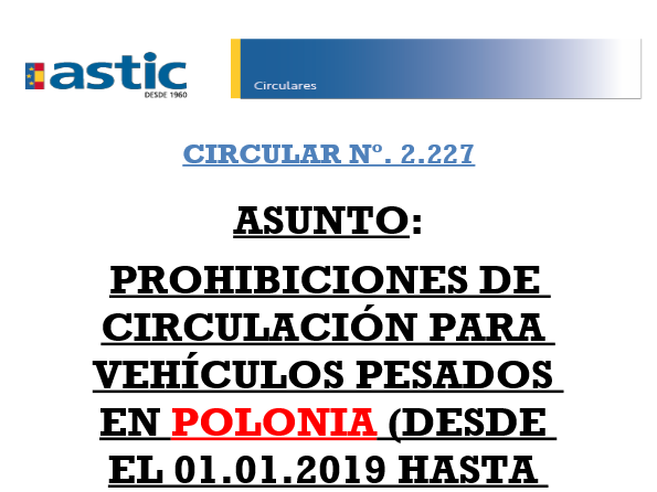 2227 Polonia. Restricciones circulación 2019