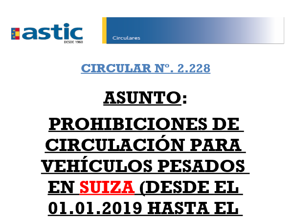 2228 Suiza. Restricciones circulación 2019