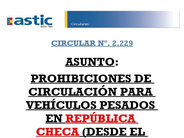 2229 República Checa. Restricciones circulación 2019